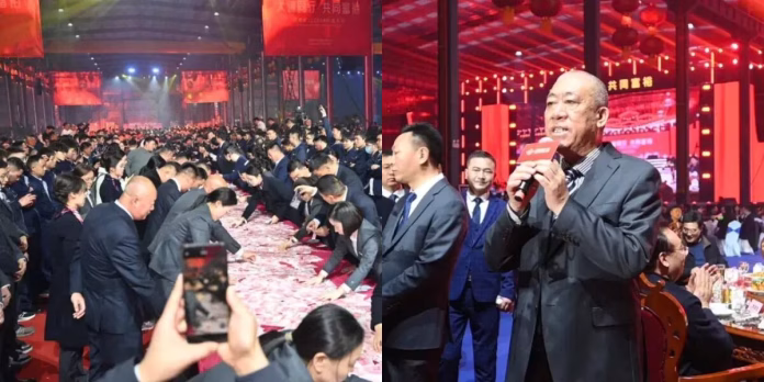 Antara acara paling dinantikan ialah pertandingan mengira wang tunai—setiap pasukan memilih dua wakil untuk mengira wang, dan jumlah yang dikira dengan betul akan dibahagikan kepada seluruh pasukan. Lebih menarik, pengasas syarikat, Cui Peijun, secara spontan menambah jumlah wang di atas meja daripada ¥40 juta kepada ¥60 juta (RM42 juta), menjadikan suasana lebih meriah.